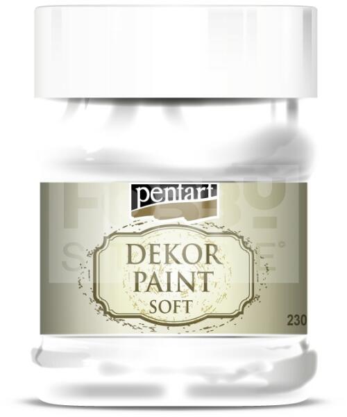 Pentart Dekorfesték lágy (chalky) fehér 230 ml 21482 Kiváló fedőképességű, gyorsan száradó, vízbázisú festék. Különleges összetételének köszönhetően matt, lágy tapintású, sima felületet kapunk, ami könnyen csiszolható. Szinte bármilyen anyagra, így fára, kerámiára, fémre, kőre, sőt falfelületre is használható. Kiválóan alkalmas kopott, antik hatás eléré