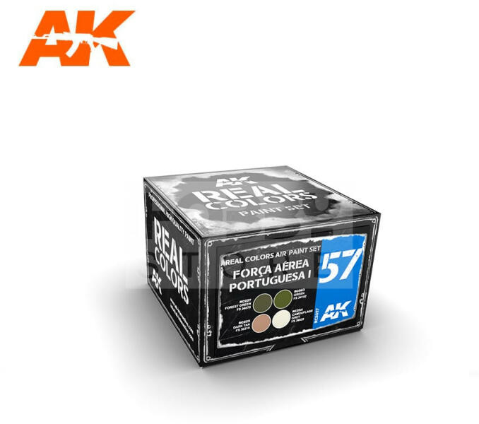 AK Interactive - REAL COLORS FORÇA AÉREA PORTUGUESA I ‘WRAP-AROUND 1990S - festékszett RCS057 Tematikus festékszett 4 darab AK Real Color festékkel. Magas miőségű akril lakk bázisú festékszett modellezéshez-makettezéshez. Használatával a lehető legpontosabb színeket érhetjük el méretarányos modelljeinken. Rendkívül jól használható festékszóróval. Az AK -Interactive R