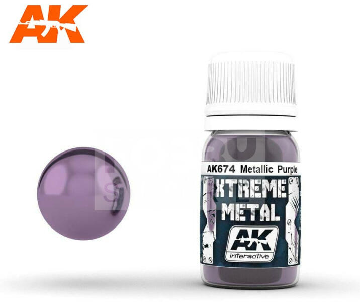 AK-Interactive XTREME METAL METALLIC PURPLE festék 30 ml AK674 Az AK-Interactive Xtreme Metal festékek az egyik legjobban fedő terülő metál festék széria a picon, mely közvetlenül fújáshoz (airbrush használathoz van hígítva). Az Xtreme metál széria három speciális alapozót és egy tisztító folyadékot is magába foglal. Az Xtreme metál festékek használatával valósághű