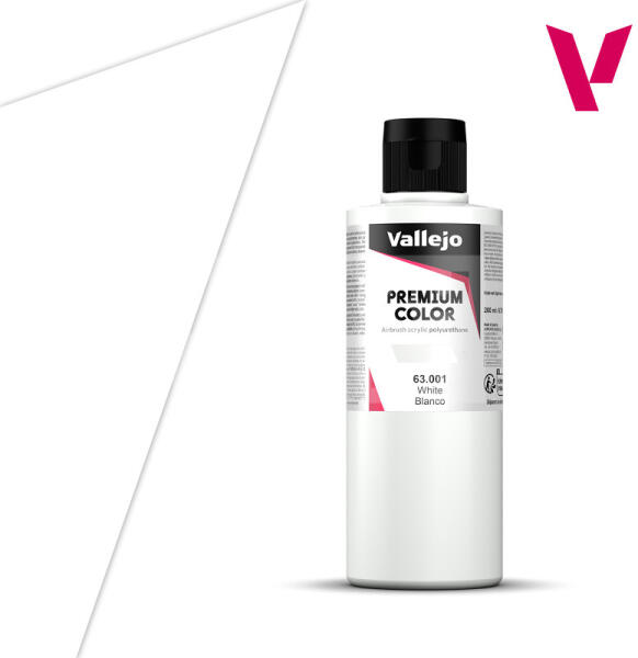 Vallejo Premium RC Colors White akrilffesték (200 ml) 63001 A Vallejo Premium RC sorozatot kifejezetten airbrush (szórópisztoly) használathoz lettek kifejlesztve. Tulajdonságának fő erőssége, hogy optimális tapadást biztosítsanak üvegszál, polietilén, polikarbonát, fém és lexan felületeken. A Premium RC sorozat speciális tartós pigmentekkel és egy új rendkívül ellenálló