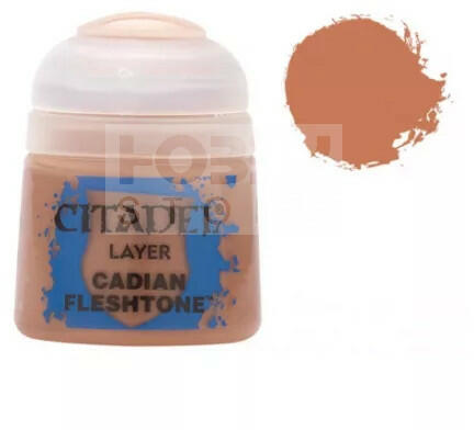 Citadel Colour Layer - Cadian Fleshtone 12 ml akrilfesték 22-36 A Citadel Layer akrilfestékek a Citadel festékcsalád legnépesebb tagja, több mint 90 féle árnyalat áll rendelkezésünkre. Alkalmazása elsősorban a Citadel Base festékrétegre javasolják hígabb állaga miatt. A Citadel Layer festékeket a modellek részleteinek kidolgozására használják, mivel akár több réteg is eg