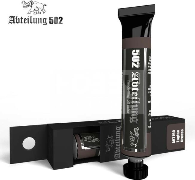 Abteilung502 - ENGINE GREASE - Motorzsír színű olajfesték 20 ml - ABT160 Az Abteilung502 olajfesték család egy kiváló minőségű termék kifejezetten makettezőknek, és figura festőknek kifejlesztve. A termékekben kevesebb lenolaj található, így meggátolva, hogy a száradás után foltos maradjon a felület. Hihetetlen finom munkát tudunk végezni és nagyszerű hatásokat érhet