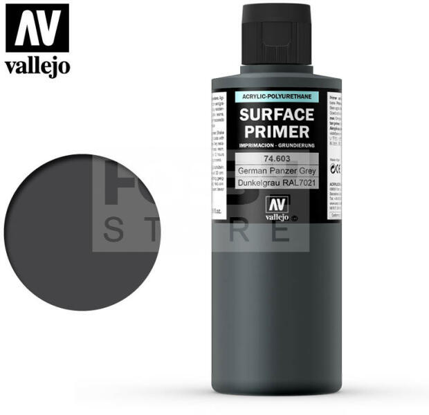 Vallejo Surface Primer Ger. Panzer Grey alapozófesték 200ml 74603V Mattra száradó akril alapozófesték. A Vallejo Surface Primerek számos árnyalatban kaphatók. Leggyakrabban makettek, modellek, miniatűr figurák, társasjáték figurák felületének előkészítésére használják a festési folyamatok megkezdése előtt. Az alapozó minden felületre felvihető, gyanta, műanyag, fehé
