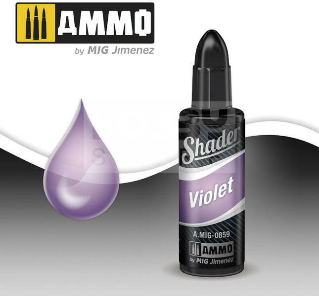 AMMO By Mig - VIOLET SHADER - Akril árnyékoló - koszoló folyadék makettezőknek 10ml - AMIG0859 Az Ammo Shaders egy teljesen új típusú termék makettezőknek. Különböző effektek létrehozására szolgál maketteken. Az átlátszó és ultrafinom festék lehetővé teszi kezdő és haladó makettezőknek egyaránt, hogy lenyűgözően élethű hatásokat érjen el amik korábban lehetet