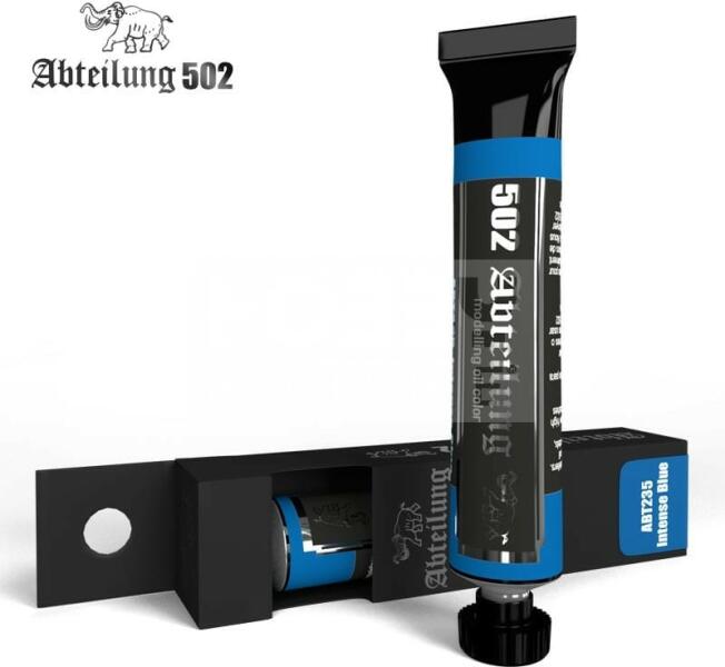 Abteilung502 - Intense Blue - Intenzív kék színű olajfesték 20 ml - ABT235 Az Abteilung502 olajfesték család egy kiváló minőségű termék kifejezetten makettezőknek, és figura festőknek kifejlesztve. A termékekben kevesebb lenolaj található, így meggátolva, hogy a száradás után foltos maradjon a felület. Hihetetlen finom munkát tudunk végezni és nagyszerű hatásokat érh