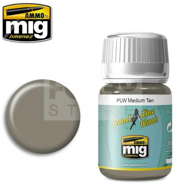 AMMO By Mig - PANEL LINE WASH MEDIUM TAN - panelező bemosó folyadék 35ml - AMIG1606 Egyszerűen használható panelvonalak bemosásához használható folyadék makettezőknek. Az AMMO enamel alapú általános bemosó-átmosó, effect és filter folyadékok, melyek nagyon sokrétűen használhatóak. Alap technika a makettesek és wargamesek számára. Az AMMO By Mig effekt bemosók kiválóan