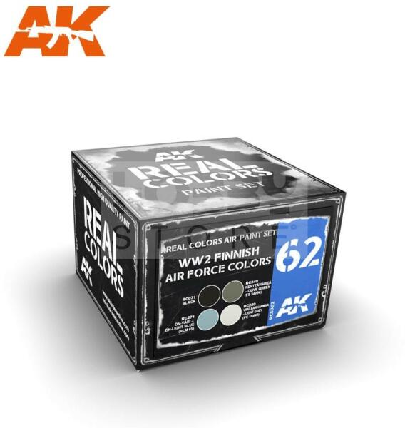 AK Interactive - REAL COLORS WW2 FINNISH AIRFORCE COLORS - festékszett RCS062 Tematikus festékszett 4 darab AK Real Color festékkel. Magas miőségű akril lakk bázisú festékszett modellezéshez-makettezéshez. Használatával a lehető legpontosabb színeket érhetjük el méretarányos modelljeinken. Rendkívül jól használható festékszóróval. Az AK -Interactive Real Color festékek