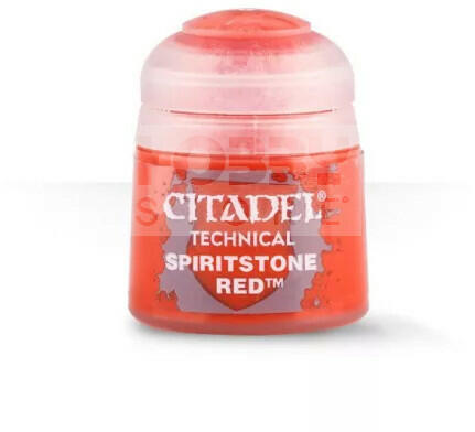 Citadel Colour Technical - Spiritstone Red 12 ml akrilfesték 27-12 A Citadel Technical kategória alatt találhatóak meg a speciális effektek és a festéssegítő eszközök széles palettája. Magában foglalja a különböző talajeffekteket dioráma és talapzat (base) építésekhez, fényes és matt lakkokat , sima és contrast festékekhez hígítókat , ékkövek festéséhez való fest