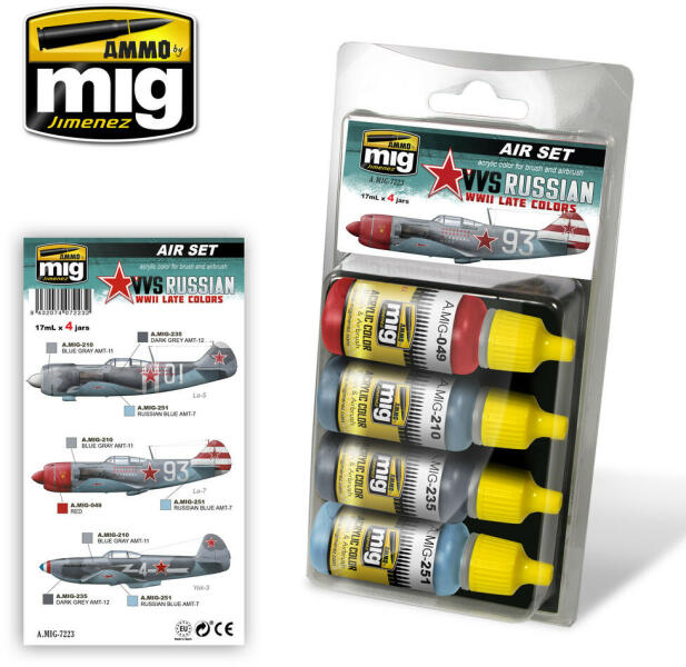AK Interactive SOVIET AIRCRAFT COLORS 1941-1945 festékszett AK11741 Tematikus festékszett 8 darab AK Interactive 3. generációs festékkel . Új formulával rendelkező magas fedőképességű festék mely kiválóan alkalmas festékszóróval és ecsettel való használatra egyaránt. Speciális összetevőinek köszönhetően nem tömődik el festékszórónk, és felrázás után azonnal has