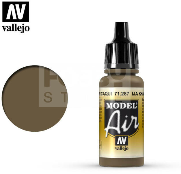 Vallejo Model Air UJA Khaki Brown akrilfesték 71287V A Vallejo Model Air széria mattra száradó akrilfesték airbrush (szórópisztoly) használathoz lett kifejlesztve. A színválaszték a közelmúltban használt katonai színek legteljesebb választékát tartalmazza, beleértve az I. és a II. világháborút valamint a napjainkban használt színeket is. Mindegyik Model Air szín a meglév