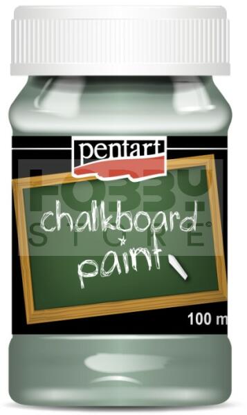 Pentart Táblafesték country zöld 100 ml Fára, falra, papírra, feszített vászonra alkalmazható, vízbázisú festék. A lefestett felületre krétával írhatunk, a feliratot vizes ruhával letörölhetjük. A lecsiszolt, portalanított felületet széles ecsettel vagy szivacshengerrel fessük le. Termék neve Táblafesték - Chalkboard paint Felhasználási terület krétával írható fel