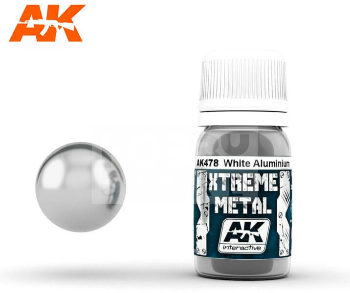 AK-Interactive XTREME METAL WHITE ALUMINIUM festék 30 ml AK478 Az AK-Interactive Xtreme Metal festékek az egyik legjobban fedő terülő metál festék széria a picon, mely közvetlenül fújáshoz (airbrush használathoz van hígítva). Az Xtreme metál széria három speciális alapozót és egy tisztító folyadékot is magába foglal. Az Xtreme metál festékek használatával valósághű