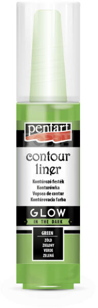 Pentart Kontúrozó festék GLOW zöld 20 ml 17498 Univerzális, vízbázisú, sűrű festék, mely bármely felületen alkalmazható minták körvonalainak körberajzolására, kiemelésére vagy 3D díszítések készítésére. Üvegfestéshez is kiváló! Száradás után vízálló és mosogatógépben mosható. Sötétben világító színek. Termék neveKontúrozó festék, sötétben vilá