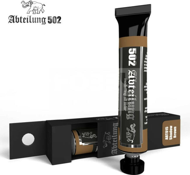 Abteilung502 - SHADOW BROWN - Árnyék barna színű olajfesték 20 ml - ABT015 Az Abteilung502 olajfesték család egy kiváló minőségű termék kifejezetten makettezőknek, és figura festőknek kifejlesztve. A termékekben kevesebb lenolaj található, így meggátolva, hogy a száradás után foltos maradjon a felület. Hihetetlen finom munkát tudunk végezni és nagyszerű hatásokat érh