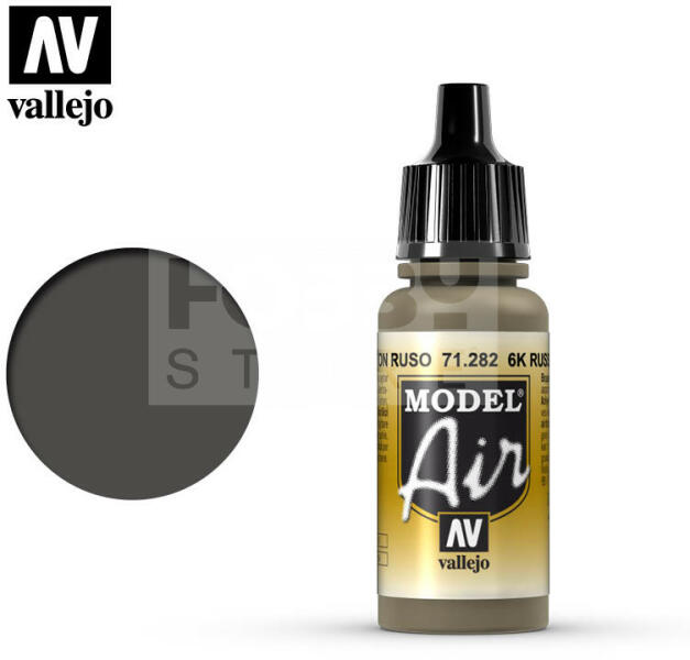 Vallejo Model Air 6K Russian Brown akrilfesték 71282V A Vallejo Model Air széria mattra száradó akrilfesték airbrush (szórópisztoly) használathoz lett kifejlesztve. A színválaszték a közelmúltban használt katonai színek legteljesebb választékát tartalmazza, beleértve az I. és a II. világháborút valamint a napjainkban használt színeket is. Mindegyik Model Air szín a meglé