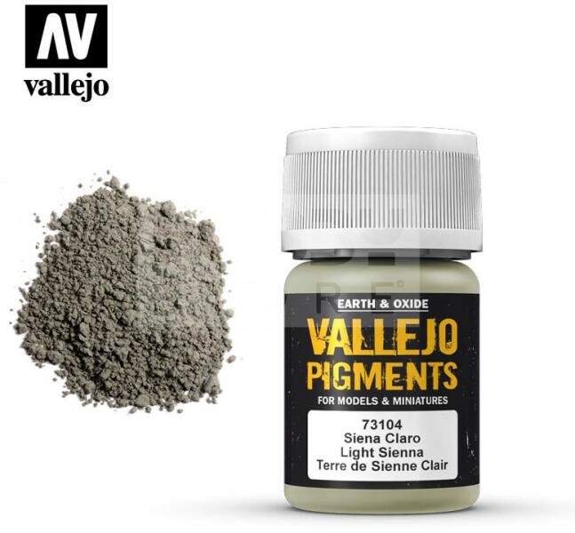 Vallejo Light Sienna Pigment (pigment por) 35 ml 73104V A Vallejo Pigmentek kiváló fényállóságú extra finomra őrölt természetes ásványi és szintetikus termékek. Ezen tulajdonságaik megkönnyítik a maketteken és diorámákon való alkalmazásukat. A Vallejo pigmentek egy sor olyan színt tartalmaz amivel könnyedén jeleníthetjük meg a járművekre és épületekre lerakódott po