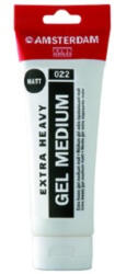 Amsterdam Extra Sűrű Gél médium matt, akrilhoz 022 - 250 ml Cél: növeli az akril festékek viszkozitását és átlátszóságát, csökkentve ezzel a fényességet Összetétel: akrilgyanta diszperziók, sűrítőanyagok, mattító szer (szilícium-dioxid) Tulajdonságok: - A tejfehér termék, száradás után színtelen és átlátszó. - Az akril festékeket nagyon sűrűvé teszi. - Jel