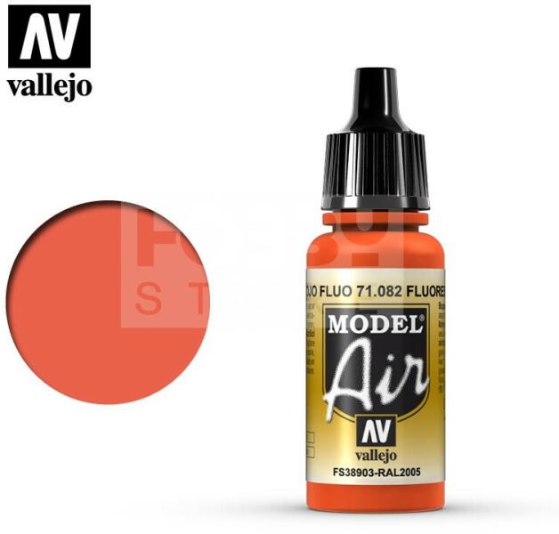 Vallejo Model Air Fluorescent Red akrilfesték 71082V A Vallejo Model Air széria mattra száradó akrilfesték airbrush (szórópisztoly) használathoz lett kifejlesztve. A színválaszték a közelmúltban használt katonai színek legteljesebb választékát tartalmazza, beleértve az I. és a II. világháborút valamint a napjainkban használt színeket is. Mindegyik Model Air szín a meglév