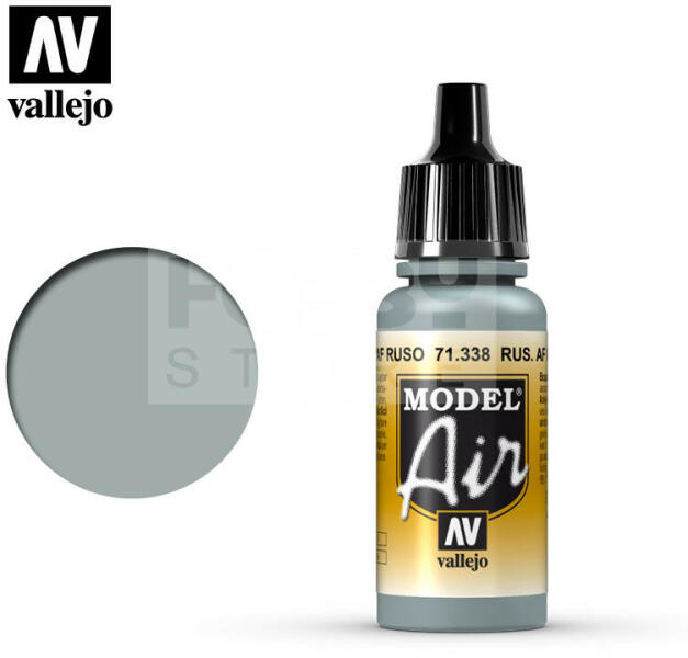 Vallejo Model Air Russian AF Grey Blue akrilfesték 71338V A Vallejo Model Air széria mattra száradó akrilfesték airbrush (szórópisztoly) használathoz lett kifejlesztve. A színválaszték a közelmúltban használt katonai színek legteljesebb választékát tartalmazza, beleértve az I. és a II. világháborút valamint a napjainkban használt színeket is. Mindegyik Model Air szín a me