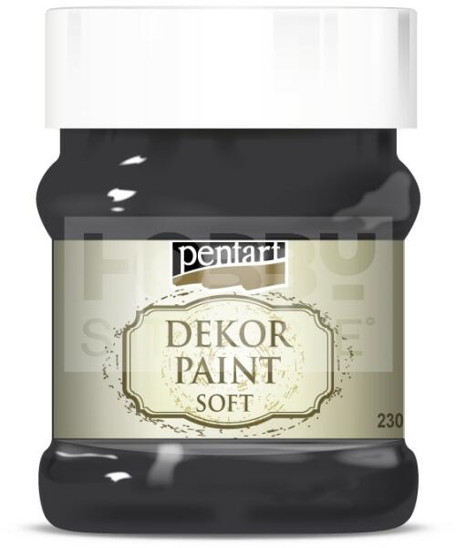 Pentart Dekorfesték lágy (chalky) fekete 230 ml 21491 Kiváló fedőképességű, gyorsan száradó, vízbázisú festék. Különleges összetételének köszönhetően matt, lágy tapintású, sima felületet kapunk, ami könnyen csiszolható. Szinte bármilyen anyagra, így fára, kerámiára, fémre, kőre, sőt falfelületre is használható. Kiválóan alkalmas kopott, antik hatás eléré