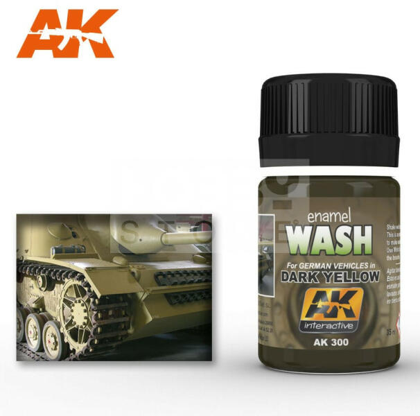 AK-Interactive DARK YELLOW WASH 35 ml AK300 Enamel alapú általános bemosó-átmosó folyadék, mely nagyon sok színhez felhasználható a fémesektől elkezdve a kékeken és a sárgákon át a pirosakig. Alap technika a makettesek és wargamesek számára. Az Ak Interactive bemosók kiválóan alkalmasak a makettek, figurák árnyékolásra. Mivel rendkívül hígak így a legapróbb mélyed