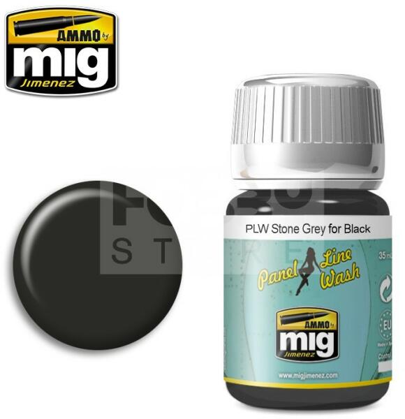 AMMO By Mig - PANEL LINE WASH STONE GREY FOR BLACK - panelező bemosó folyadék 35ml - AMIG1615 Egyszerűen használható panelvonalak bemosásához használható folyadék makettezőknek. Az AMMO enamel alapú általános bemosó-átmosó, effect és filter folyadékok, melyek nagyon sokrétűen használhatóak. Alap technika a makettesek és wargamesek számára. Az AMMO By Mig effekt bemosók