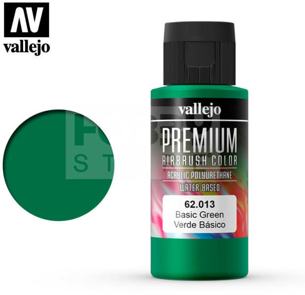 Vallejo Premium RC Colors Basic Green akrilfesték (60 ml) 62013V A Vallejo Premium RC sorozatot kifejezetten airbrush (szórópisztoly) használathoz lettek kifejlesztve. Tulajdonságának fő erőssége, hogy optimális tapadást biztosítsanak üvegszál, polietilén, polikarbonát, fém és lexan felületeken. A Premium RC sorozat speciális tartós pigmentekkel és egy új rendkívül ellená