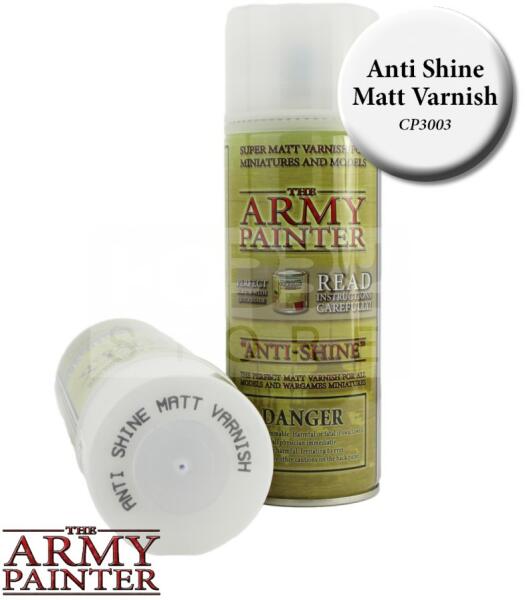 The Army Painter Base Primer - Anti-Shine, Matt Varnish matt lakk spray CP3003 Az Army Painter Color Primer spray-k nagyszerő fedőképességű formulával rendelkeznek. Kiválóan alkalmasak műanyag, fém és gyanta figurák makettek alapozásához. Extra finom pigmentet tartalmaznak és a speciális fúvókának köszönhetően rendkívül könnyen fújhatók fel a kívánt felületre. Az Army