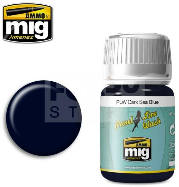 AMMO By Mig - PANEL LINE WASH DARK SEA BLUE - panelező bemosó folyadék 35ml - AMIG1603 Egyszerűen használható panelvonalak bemosásához használható folyadék makettezőknek. Az AMMO enamel alapú általános bemosó-átmosó, effect és filter folyadékok, melyek nagyon sokrétűen használhatóak. Alap technika a makettesek és wargamesek számára. Az AMMO By Mig effekt bemosók kivál