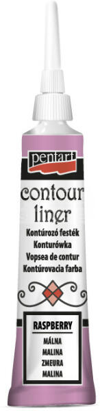 Pentart Kontúrozó festék csillogó málna 20 ml 14119 Univerzális, vízbázisú, sűrű festék, mely bármely felületen alkalmazható minták körvonalainak körberajzolására, kiemelésére vagy 3D díszítések készítésére. Üvegfestéshez is kiváló! Száradás után vízálló és mosogatógépben mosható. Csillogó színek. Termék neveKontúrozó festék, csillogó - Contour lin