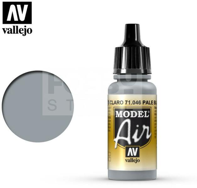 Vallejo Model Air Pale Blue Grey akrilfesték 71046V A Vallejo Model Air széria mattra száradó akrilfesték airbrush (szórópisztoly) használathoz lett kifejlesztve. A színválaszték a közelmúltban használt katonai színek legteljesebb választékát tartalmazza, beleértve az I. és a II. világháborút valamint a napjainkban használt színeket is. Mindegyik Model Air szín a meglév