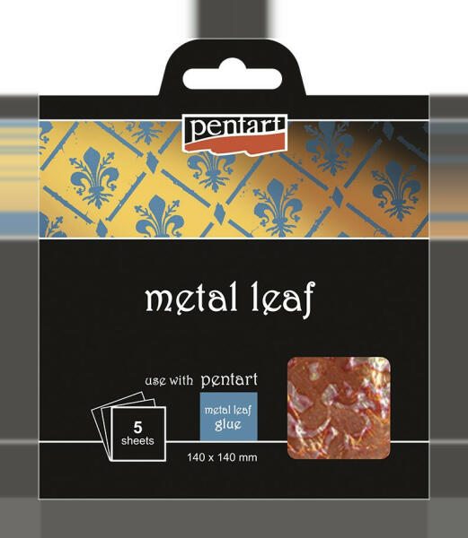 Füstfólia lapok aranyozott és más fémes felületek létrehozására. A csomag 5 db 14 x 14 cm-es lapot tartalmaz. Használjuk füstfólia ragasztóval, majd védjük a felületet oldószeres lakkal vagy Pouring lakkal. Normál és foltokban tarka színekben kapható.