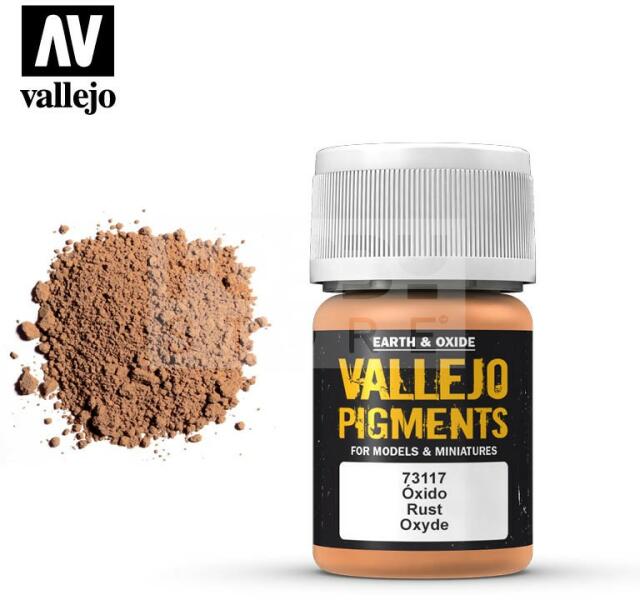 Vallejo Rust Pigment (Rozsda színű pigment por) 35 ml 73117V Rozsda hatás eléréséhez használahtó pigment makettezőknek. A Vallejo Pigmentek kiváló fényállóságú extra finomra őrölt természetes ásványi és szintetikus termékek. Ezen tulajdonságaik megkönnyítik a maketteken és diorámákon való alkalmazásukat. A Vallejo pigmentek egy sor olyan színt tartalmaz amivel könn