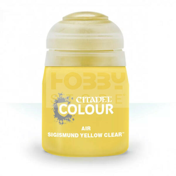 Citadel Colour Air - Sigismund Yellow Clear 24 ml akrilfesték 28-62 A Citadel Air akrilfestékek kifejezetten az airbrush technikához lettek kialakítva. Hígabb állaga lehetővé teszi, hogy hígítás nélkül, közvetlenül felhasználható szórópisztolyhoz . A festékek között megtalálhatjuk a legnépszerűbb Citadel festékek színeit, amelyekkel pontosan ugyanolyan árnyalatot kapunk