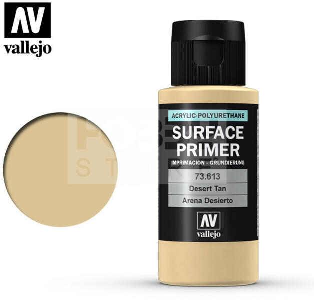 Vallejo Surface Primer Desert Tan Base alapozófesték 60ml 73613V Mattra száradó akril alapozófesték. A Vallejo Surface Primerek számos árnyalatban kaphatók. Leggyakrabban makettek, modellek, miniatűr figurák, társasjáték figurák felületének előkészítésére használják a festési folyamatok megkezdése előtt. Az alapozó minden felületre felvihető, gyanta, műanyag, fehér