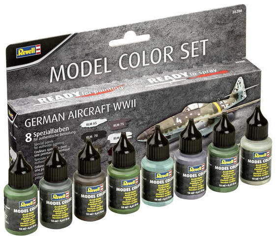 A Model Color � German Aircraft WWII festékkészlettel tökéletes színekkel tervezheti meg részletesen és hitelesen a második világháborús német Luftwaffe modelljeit. Ez a készlet nyolc gondosan illeszkedő árnyalatot tartalmaz, amelyek a dobozból kivéve azonnal használatra készek � nincs szükség hígításra. Akár festékszóróval, akár ecsettel dolgozik, a festékek mind