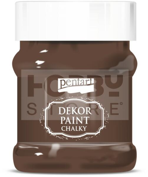 Pentart Dekorfesték lágy (chalky) gesztenyebarna 230 ml 38811 Kiváló fedőképességű, gyorsan száradó, vízbázisú festék. Különleges összetételének köszönhetően matt, lágy tapintású, sima felületet kapunk, ami könnyen csiszolható. Szinte bármilyen anyagra, így fára, kerámiára, fémre, kőre, sőt falfelületre is használható. Kiválóan alkalmas kopott, antik hatás