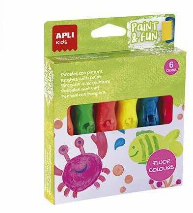 A Tempera készlet, ecsetvégű tubusban, APLI Kids Paint&Fun, 6 különböző neon szín (LCA19418) Kényelmes és praktikus festés, mely bárhol használható. -új, egyedi ecsetvégű tubusos formában, mely könnyű és pontos használatot tesz lehetővé -nem kell az ecset kimosásával foglalkozni -fejleszti a kreativitást, koncentrációt és fantáziát -a készlet 6 különböző fl