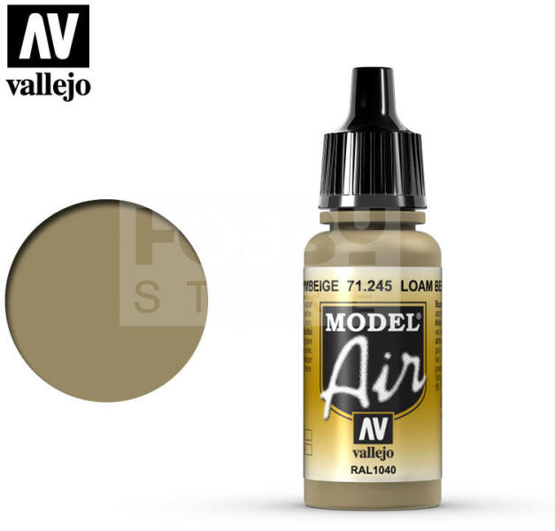 Vallejo Model Air Loambrown RAL 1040 akrilfesték 71245V A Vallejo Model Air széria mattra száradó akrilfesték airbrush (szórópisztoly) használathoz lett kifejlesztve. A színválaszték a közelmúltban használt katonai színek legteljesebb választékát tartalmazza, beleértve az I. és a II. világháborút valamint a napjainkban használt színeket is. Mindegyik Model Air szín a megl