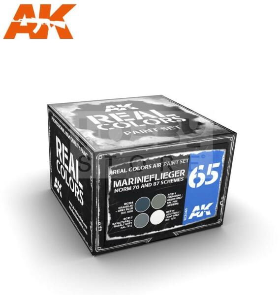 AK Interactive - REAL COLORS MARINEFLIEGER NORM 76 AND 87 SCHEMES - festékszett RCS065 Tematikus festékszett 4 darab AK Real Color festékkel. Magas miőségű akril lakk bázisú festékszett modellezéshez-makettezéshez. Használatával a lehető legpontosabb színeket érhetjük el méretarányos modelljeinken. Rendkívül jól használható festékszóróval. Az AK -Interactive Real Color f