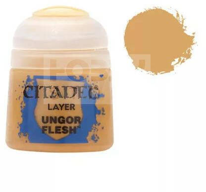 Citadel Colour Layer - Ungor Flesh 12 ml akrilfesték 22-39 A Citadel Layer akrilfestékek a Citadel festékcsalád legnépesebb tagja, több mint 90 féle árnyalat áll rendelkezésünkre. Alkalmazása elsősorban a Citadel Base festékrétegre javasolják hígabb állaga miatt. A Citadel Layer festékeket a modellek részleteinek kidolgozására használják, mivel akár több réteg is egymás