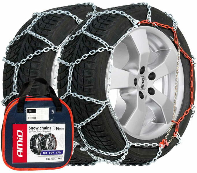 Rombusz mintás hólánc párban | 9 mm-es láncszemek | KN70Maximum 2000 kg-os járműveken használható, maximum 50 km/h sebességig. Trapéz minta, amely garantálja a jó tapadást és a megfelelő oldaltartást. Könnyen felszerelhető. A mérettáblázat a DOKUMENTUMOK fül alatt található, amiben ellenőrizhető mely gumiabroncs méreteken használható a termék.