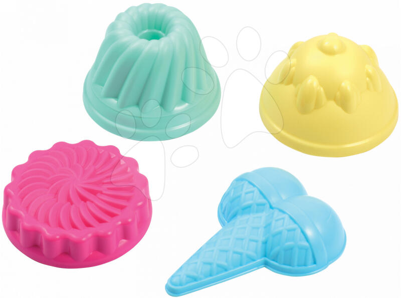 Écoiffier homokozó szett erős műanyagból készült. A homokozó formák 18 hónapos kortól ajánlottak. A formák segítségével a kicsik gyönyörű alkotásokat fognak a homokozóban megvalósítani, ezzel fejlődik fantáziájuk és kreativitásuk egyben. A játék formák méretei 15*11*10 cm. A homokozó forma szett 4 darab formából áll. A csomagban különféle alakú homokozó for