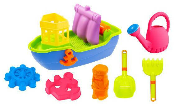 Jó szórakozást kínál a homokkal és a vízzel való játékhoz ez a homokozó szett hajóval. Akár otthon a homokozóban, akár a starndon is használható. Töltsd fel a hajót homokkal és szállítsd amerre csak akarod vagy készíts gyönyörű homokformákat a formák segítségvel. Mérete: 37 x 19,5 x 24 cm 2 éves kortól ajánljuk.