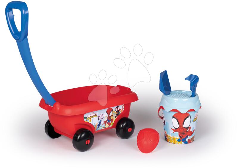Húzható kiskocsi vödör szettel a francia Smoby vállalat műhelyéből élményekkel teli időtöltést szerez a gyerkőcöknek a homokozóban már 18 hónapos kortól. Tarka játék szettet a közkedvelt Spidey (Pó kember) ábrája díszíti, akit gyerekek világszerte ismernek és nagyon szeretnek. Egész mesés szett egy lehajtható fogantyúval kiegészített piros húzhat kiskocsiból, v