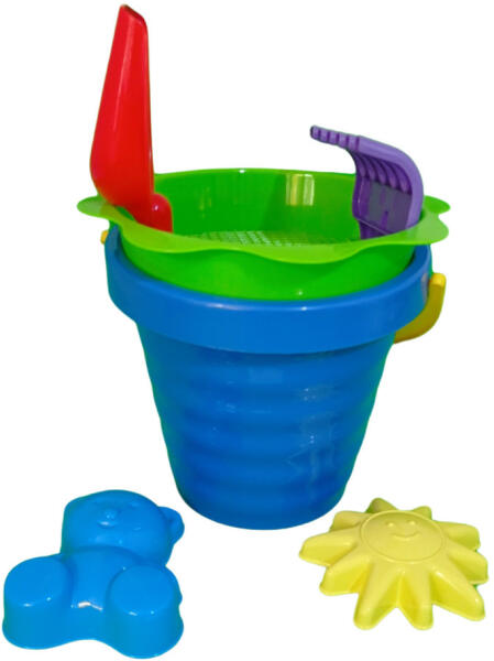 A gyermek homokkészlet fontos kiegészítő, ha a gyerek a homokban játszik. Ez a homokozó készlet vödröt, szűrőt, gereblyét, lapátot és labdát tartalmaz. A szett kiváló minőségű és egészségbarát műanyagból készült.