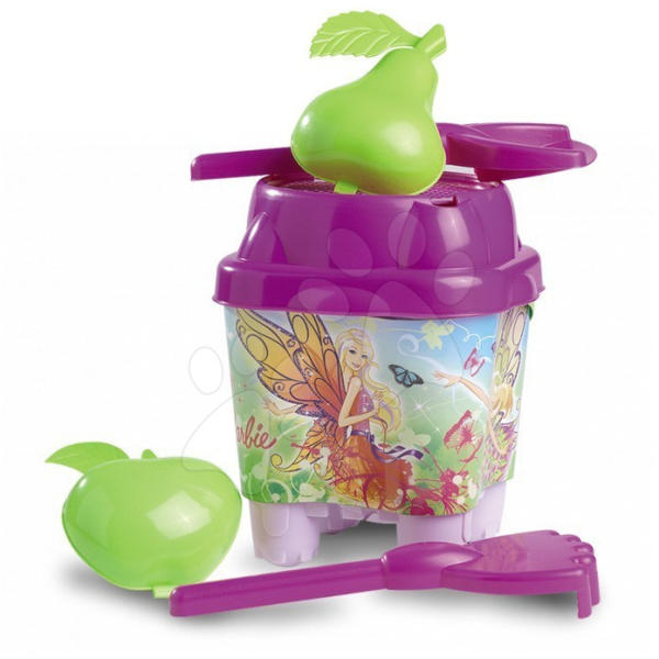 Divertoys homokozó szett gyerekeknek nagyon szép tündéres motívumú vödröt, lila gereblyét, szitát és lapátot illetve zöld színű alma és körte homokozó formát tartalmaz. A vödör vár alakú , mely Barbie tündérek motívummal van díszítve, mely minden kislány szívét azonnal elnyeri. A játék szett 6 darab szerszámot tartalmaz. A homokozó szett nagyszerű társa lesz a