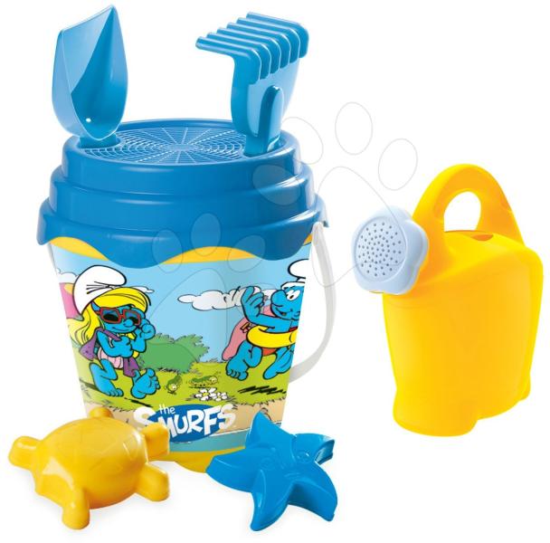 Mondo szett gyerekeknek a homokozóba 7 szerszámot tartalmaz. A gyermek játék szett homokozóba műanyag vödörből, gereblyéből, kislapátból, szitából, 2 formából és locsolókannából áll érdekes motívummal, a Hupikék törpikék meséből, díszítve. A gyermek homokozó szett minőségi szilárd és ellenálló műanyagból készült. Kicsik az új homokozó szettel nagyon sok