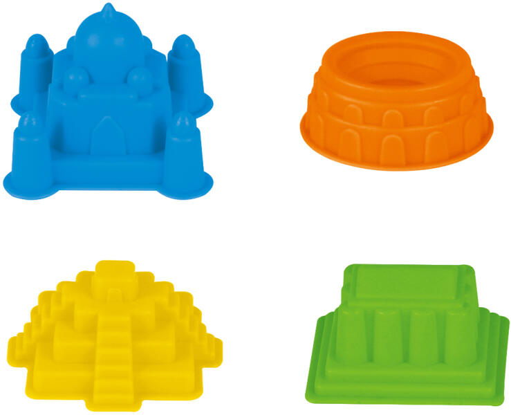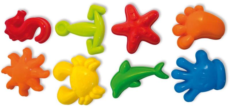 8 darabos homokozó forma készlet vidám, élénk színekben, különböző formákkal. A termék kinézete eltérhet a képen láthatótól.