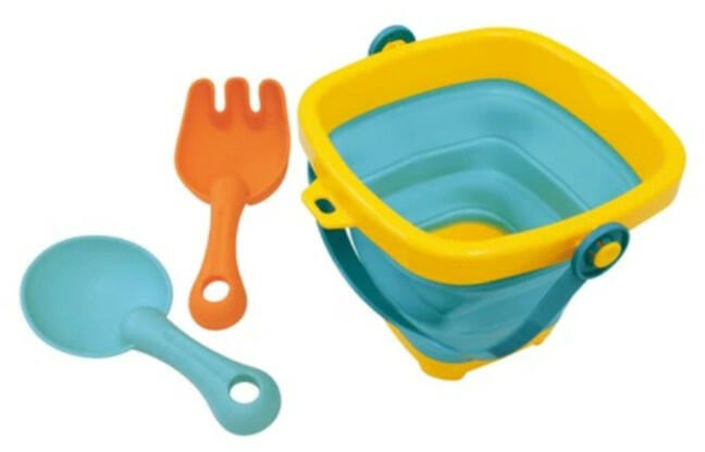 Összecsukható vödör vízi játékokkal Összecsukható vödör vízi játékokkal . Kis helyen elfér ez a praktikus, összecsukható vödör, így könnyedén magatokkal tudjátok vinni a játszótérre vagy akár a nyaralásra is. A füles vödörhöz tartozik egy kislapát és egy gereblye, ami nagyszerű lesz a gyerekeknek a homokozáshoz. A vödör alja nem lyukas, ezért vizet is lehet b